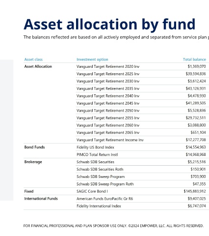 The balances reflected are based on all actively employed and separated from service plan participants. The participant balances do not include any outstanding loan amounts.