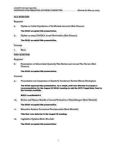 DEFERRED COMPENSATION ADVISORY COMMITTEE Minutes for May 23, 2024