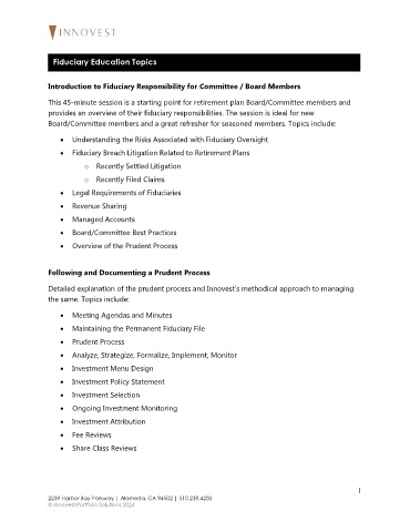 provides an overview of their fiduciary responsibilities. The session is ideal for new