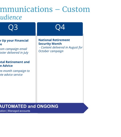 - Retiree’s only - Content delivered in April - Custom campaign email - Content delivered in August for