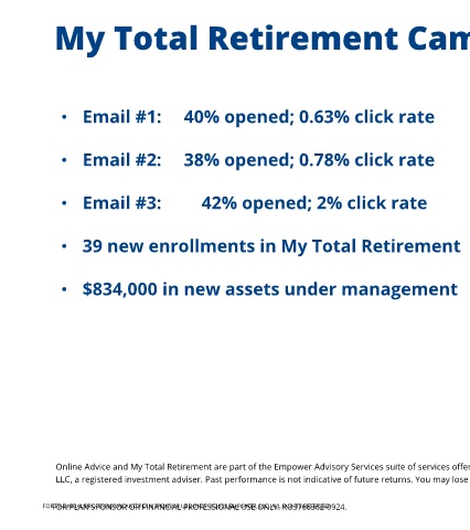 Online Advice and My Total Retirement are part of the Empower Advisory Services suite of services offered by Empower Advisory Group,