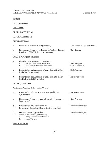 DEFERRED COMPENSATION ADVISORY COMMITTEE December 2, 2024