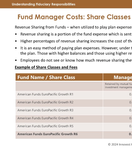 • Employees do not see or know how much revenue sharing they pay in each fund