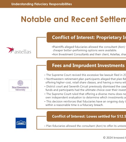 •Aon Investment Consultants and their client, Astellas, shared a $9.5 million settlement.