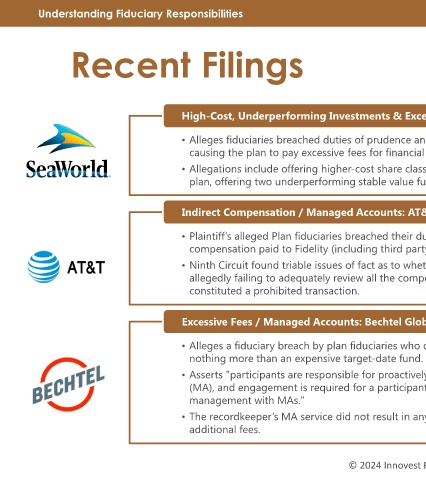 • Alleges a fiduciary breach by plan fiduciaries who defaulted participants into a managed account option that was