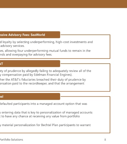 • Alleges a fiduciary breach by plan fiduciaries who defaulted participants into a managed account option that was