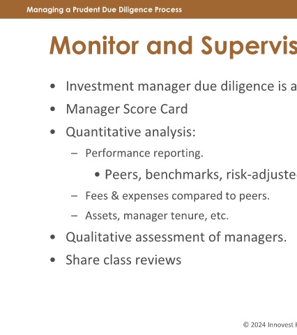 • Investment manager due diligence is an ongoing process.