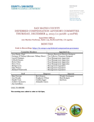 Link to Recording: https://hr.smcgov.org/deferred-compensation-governance