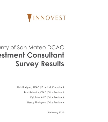Investment Consultant Brett Minnick, CFA® | Vice President Kyli Soto, AIF® | Vice President Nancy Rimington | Vice President February 2024 Rick Rodgers, AIFA® | Principal, Consultant County of San Mateo DCAC Survey Results