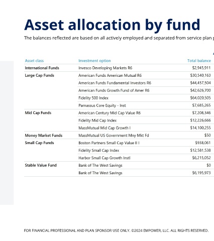 The balances reflected are based on all actively employed and separated from service plan participants. The participant balances do not include any outstanding loan amounts.