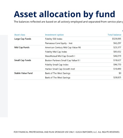The balances reflected are based on all actively employed and separated from service plan participants. The participant balances do not include any outstanding loan amounts.