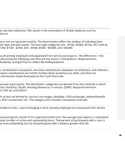 results for a population of similar plans based on the combination of plan type and plan assets. The plan type categories are: 401(k), 403(b), 401(a), 457, and all
