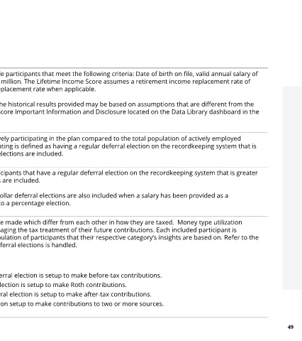 • Before-tax only: Population of participants where 100% of their deferral election is setup to make before-tax contributions.
