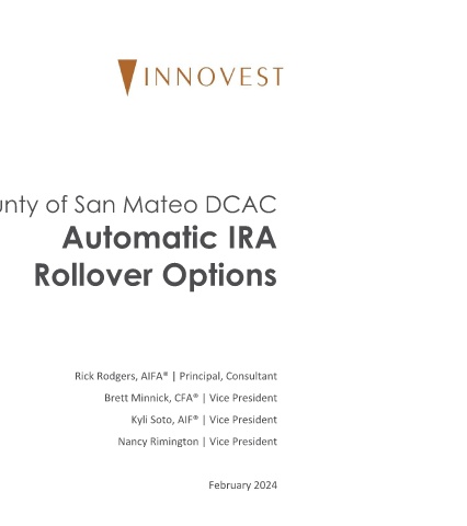County of San Mateo DCAC Automatic IRA Rollover Options Rick Rodgers, AIFA® | Principal, Consultant Brett Minnick, CFA® | Vice President Kyli Soto, AIF® | Vice President Nancy Rimington | Vice President February 2024