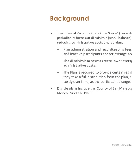 • Eligible plans include the County of San Mateo’s 457(b) Deferred Compensation Plans and 401(a)
