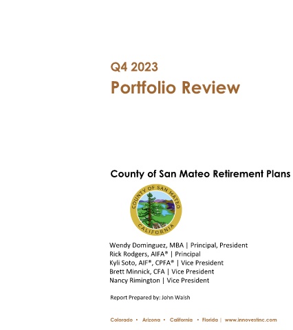 Q4 2023 Portfolio Review Wendy Dominguez, MBA | Principal, President Rick Rodgers, AIFA® | Principal Kyli Soto, AIF®, CPFA® | Vice President Brett Minnick, CFA | Vice President Nancy Rimington | Vice President Report Prepared by: John Walsh California • Colorado • Arizona •