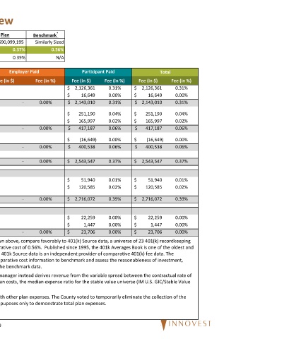 Plan Fee (in $) $ $ $ $ $ $ products for similarly‐sized plans, with an average investment, recordkeeping and administrative cost of 0.56%. Published since 1995, the 401k Averages Book is one of the oldest and **General Ac