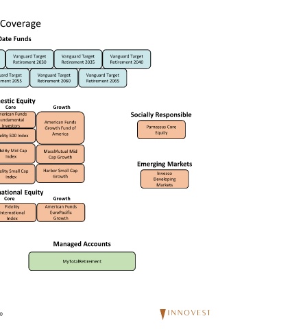 Target Date Funds Vanguard Target Vanguard Target Retirement 2030 Retirement 2025 Vanguard Target Retirement 2055 Equity Domestic Core American Funds Fundamental Investors Fidelity 500 Index Fidelity Mid Cap Index Fidelity Small Cap Index Equity International Core Fidelity International Index 10