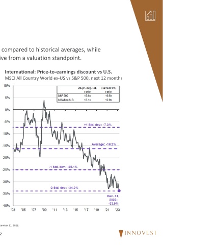 International: Price‐to‐earnings discount vs U.S.