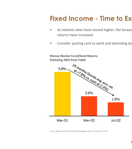 returns have increased. Money Market Fund/Bond Returns following 2001 Peak Yields Sources: Blackrock Student of the Market, Morningstar. Data as of December 31, 2023.
