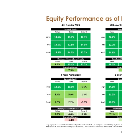 4th Quarter 2023 Domestic Equity Core 11.7% 12.8% 14.0% Developed International Equity Core 10.4% Emerging Markets 7.9% 3 Years Annualized Domestic Equity Core 10.0% 5.9% 2.2% Developed International Equity Core 4.0% Emerging Markets ‐5.1%