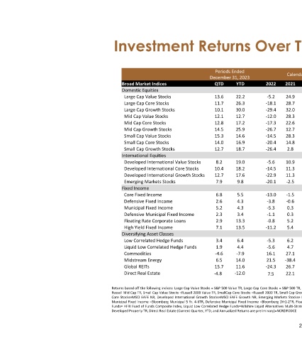Broad Market Indices Domestic Equities Large Cap Value Stocks Large Cap Core Stocks Large Cap Growth Stocks Mid Cap Value Stocks Mid Cap Core Stocks Mid Cap Growth Stocks Small Cap Value Stocks Small Cap Core Stocks Small Cap Growth Stocks International Equities Developed International Value Stocks Developed International Core Stocks Developed International Growth Stocks Emerging Markets Stoc