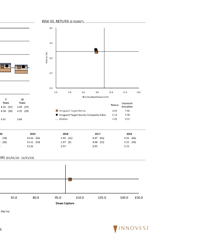 ¢ £ Vanguard Target Ret Inc 7.34 (56) 10.74 (44) 10.74 (44) 0.56 (48) 4.83 (52) 4.34 (52) 4.09 (37) Deviation