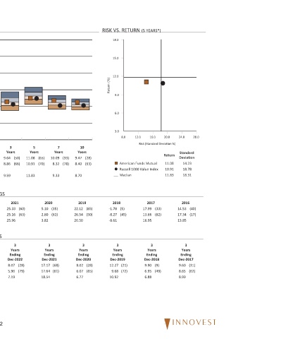 (5 YEARS*) 16.0 12.0 Risk (Standard Deviation %) American Funds Mutual Russell 1000 Value Index 2017 (33) 17.99 (82) 13.66 16.95 3 Years Ending Dec-2018 (9) 9.90 (49) 6.95 6.88