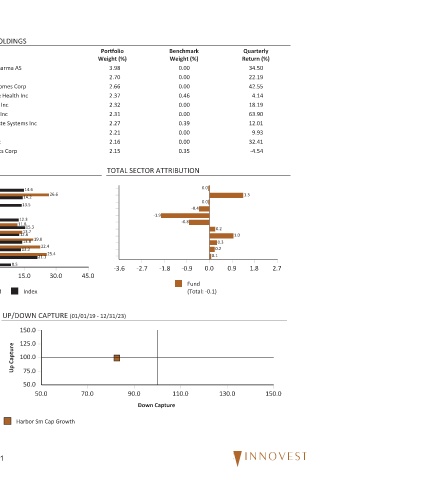 TOP 10 HOLDINGS Ascendis Pharma AS ITT Inc Meritage Homes Corp Option Care Health Inc Smartsheet Inc M/I Homes Inc Casella Waste Systems Inc Saia Inc Samsara Inc Haemonetics Corp 0.0 0.0 -7.3 -1.2 0.0 8.5 0.0 -15.0 Fund Up Capture 61