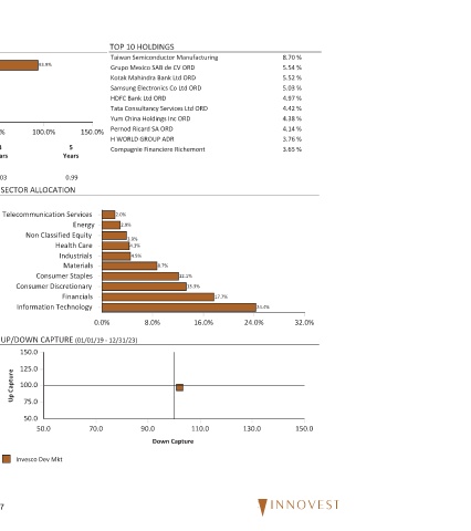 93.9% 100.0% SECTOR ALLOCATION Telecommunication Services Consumer Discretionary Information Technology UP/DOWN CAPTURE 150.0 125.0 100.0 75.0 50.0 50.0 Invesco Dev Mkt