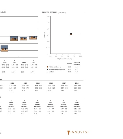 RISK VS. RETURN 3.6 2.7 1.8 0.9 0.0 -0.9 -1.8 -2.5 Fidelity US Bond Ix Median 2018 (18) 0.03 (18) 0.01 -0.62 3 Years Ending Dec-2019 (47) 3.94 (41) 4.03 3.91