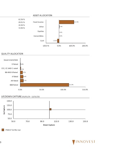 QUALITY ALLOCATION Government/AAA D Rated CCC, CC AND C rated BB AND B Rated A Rated AA Rated BBB Rated UP/DOWN CAPTURE 150.0 125.0 100.0 75.0 50.0 50.0 PIMCO Tot Rtn Inst