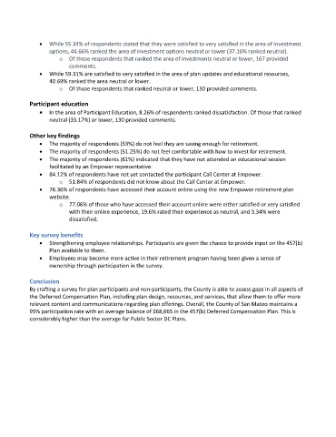 • In the area of Participant Education, 8.26% of respondents ranked dissatisfaction. Of those that ranked