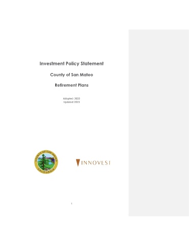 Investment Policy Statement County of San Mateo Retirement Plans Adopted: 2022 Updated 2023 1
