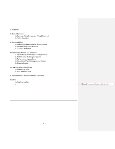 Deleted: B. Investment Options and Benchmarks