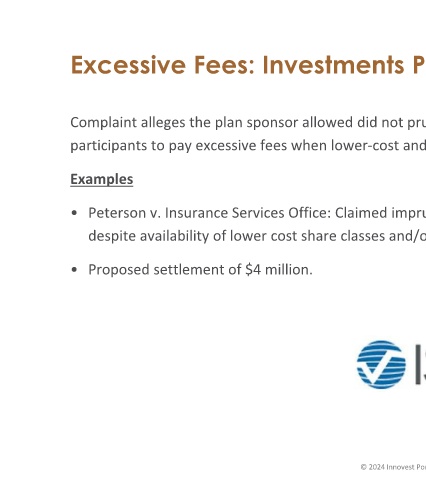 • Peterson v. Insurance Services Office: Claimed imprudent selection and retention of investment options
