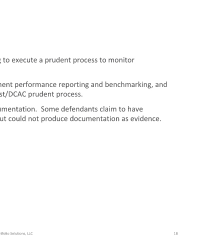 • Most defendants created potential liability by failing to execute a prudent process to monitor