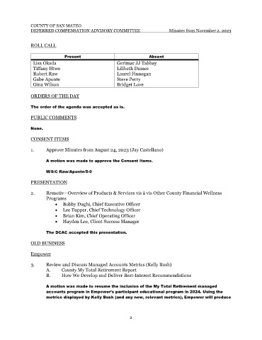 DEFERRED COMPENSATION ADVISORY COMMITTEE Minutes from November 2, 2023
