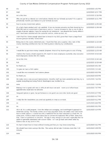 93 Being new to the county retirement plan, I found that fees are a surprise. Also, lack of the 11/22/2023 11:19 AM