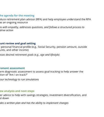 Introduce retirement plan advisor (RPA) and help employee understand the RPA