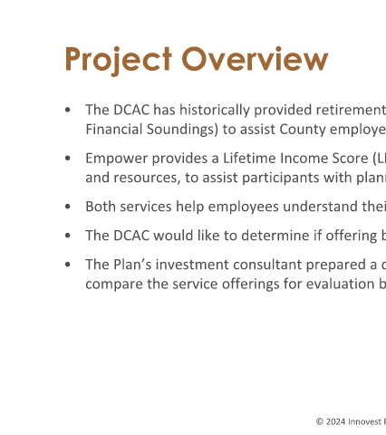 Financial Soundings) to assist County employees with retirement planning and advice.