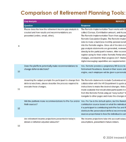 Comparison of Retirement Planning Tools: Gap Analysis © 2024 Innovest Portfolio Solutions 5