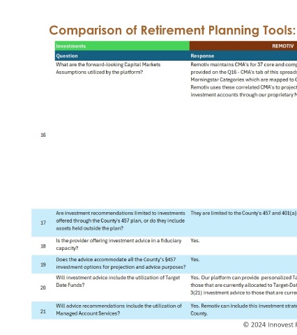 Comparison of Retirement Planning Tools: Investments (continued)