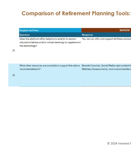 Comparison of Retirement Planning Tools: Support and Fees © 2024 Innovest Portfolio Solutions 8