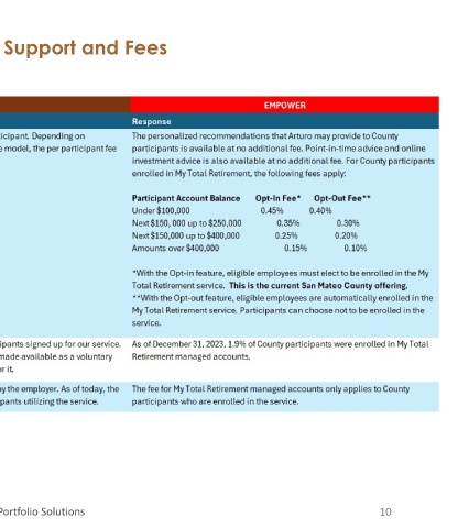 Comparison of Retirement Planning Tools: Support and Fees © 2024 Innovest Portfolio Solutions 10