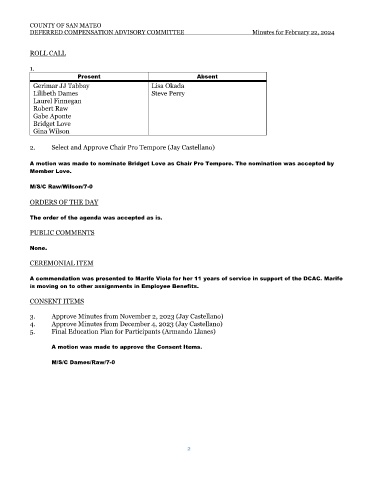 DEFERRED COMPENSATION ADVISORY COMMITTEE Minutes for February 22, 2024
