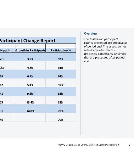 County of San Mateo 457 Plan Annual Asset and Participant Change Report The assets and participant