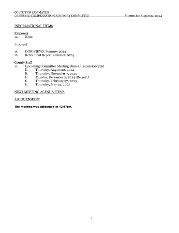 DEFERRED COMPENSATION ADVISORY COMMITTEE Minutes for August 22, 2024