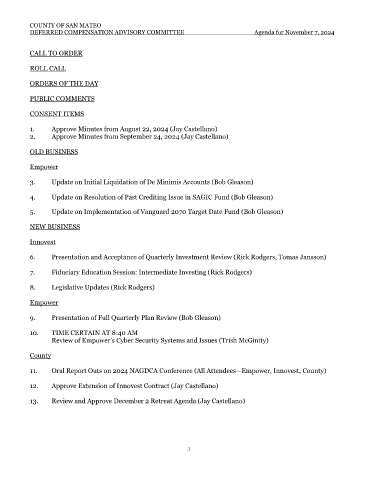 DEFERRED COMPENSATION ADVISORY COMMITTEE Agenda for November 7, 2024