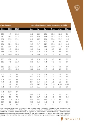 Annualized Periods Ended September 30, 2024 7 yrs 5 yrs 11.6 13.2 14.5 16.0 16.4 17.6 8.8 10.3 10.5 11.3 11.9 11.5 6.6 9.3 7.4 9.4 7.6 8.8 5.0 8.3 6.0 8.2 6.7 7.7 3.7 5.7 1.5 0.3 1.7 1.5 1.7 1.3 1.5 1.5 5.28 5.74 4.6 4.5 ‐ ‐ 2.6 3.2 4.9 7.8 10.5 13.9 4.5 3.0 ‐ ‐ =Bloomberg Income Fixed